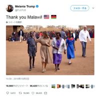 メラニア夫人はその後のレセプションで、同じ装いながらもジャケットの上にベルトを着用し、ローファーからハイヒールに衣装替えする徹底ぶり。前日のセリーヌのドレスとハイヒールが30万円超えだったことから「ガーナの最低賃金の1300倍以上」などと報じているメディアもあるが、トランプ大統領が富豪であるせいか、税金生活のキャサリン妃とは違って一般市民からは華美な服にも批判は少ないどころか称賛の声が多いようだ。