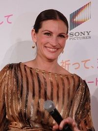 ジュリア・ロバーツが、8月19日、六本木ヒルズで開催された『食べて、祈って、恋をして』(9月17日公開)のジャパンプミレアに登場。六本木ヒルズアリーナのステージは赤提灯が飾られ、夏祭りの盆踊り会場さながらに熱気ムンムン。色とりどりの浴衣を着た女性ファンがレッドカーペットの周りを囲む中、ジュリアはビッグスマイルでファンの声援に応えてサービスを行った。