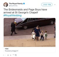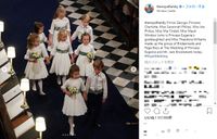 晴天だったものの強風に見舞われたこの日、キャサリン妃を含む女性ゲストがスカートの裾を押さえる姿が印象的だったが、特に小さな子供たちが教会の前の階段を上っていく際には、スカートがふんわり舞いあがりそうになるどころか、ページボーイのルイ・ド・ジバンシィは強風にあおられてつまずき、階段に手をついたほどだった。シャーロット王女は、観衆の方に振り返って手を振った後、1人で階段を上る際に少しよろけたが、それでも無事に登りついた。