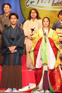 ドラえもんのひみつ道具を使って月の裏側に“ウサギ王国”を作ることになったのび太たちが、月を舞台に大冒険を繰り広げる姿を描く本作。映画のテーマが“月”であることから、この日は“秋のお月見”をテーマに、登壇者全員が和装で登壇。かぐや姫を連想させる豪華な十二単で現れた広瀬は「自然と背筋が伸びます」と晴れやかな笑顔を見せた。