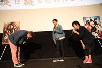 舞台挨拶中盤には、福田雄一監督が乱入。「言ってほしいセリフがあったりするんでしょ?」と福田監督からけしかけられると、戸塚は胸からメモを取り出し「太田さんが来るということで好きなセリフをメモってきた」と告白。太田が「スパーキング!」など名セリフを放つと、会場も大熱狂。感動しきりの戸塚を太田が胸で受け止めると、さらなる拍手が上がっていた。