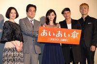 映画『あいあい傘』の初日舞台挨拶が10月26日にTOHOシネマズ日比谷で開催され、倉科カナ、市原隼人、立川談春、原田知世、宅間孝行監督が登壇。倉科と市原がお互いへの信頼感を述べるなか、談春が「おいおい、見つめ合っちゃってるよ」と嫉妬まじりにコメントし、会場の笑いを誘った。
