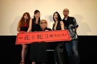 官能小説の古典として知られる団鬼六による同名作を映画化した人気シリーズの第3弾となる『花と蛇3』(公開中)の初日舞台挨拶が8月28日、都内で行われ、出演者の小向美奈子、水谷ケイ、小松崎真理、成田裕介監督が舞台挨拶を行った。
