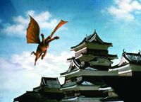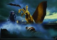 キングギドラの出生地や生態は不明だが、5千年前に金星人を全滅させるなど古くから宇宙で破壊を繰り返してきた。時空を越え破壊神として出現するギドラも、容赦なき暴君ぶりを発揮し、人類を絶滅へと追い込んでいく。キングギドラと聞いてまず思い浮かぶのが、金色のウロコに覆われた巨体と3本の長い首を持つ威圧的な姿。『三大怪獣 地球最大の決戦』での設定は、身長100メートル、翼長150メートル、体重は3万トンで、当時の怪獣の中でも規格外のスケールだった(ゴジラは身長50メートル、体重2万トン)。