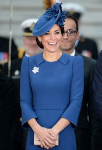 この日のキャサリン妃は、御用達ブランドであるジェニー・パッカムのブルーのペンシルドレスと、ヌードカラーのクラッチバッグと同色のジャンヴィト・ロッシのパンプスというシンプルな出で立ち。ヘアスタイルは、フェイスラインのかなり上の方から大きなウェーブがボリューミーでゴージャス感をアップ、腕時計に婚約指輪とピアスとジュエリーはミニマルで、帝国戦争博物館の訪問にふさわしいファッションだ。