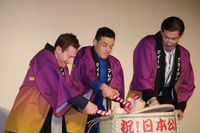 クイーンを演じた3人がはっぴで鏡開き!フレディ・マーキュリー役のラミ・マレックらが来日(画像12/12)