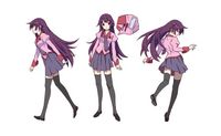 第1作目「化物語」で暦が最初に出会ったのが、シリーズ全体を通してのメインヒロインであり、怪異“おもし蟹”により“重さ”を失った少女・戦場ヶ原ひたぎ(せんじょうがはらひたぎ)。ツンデレではあるものの、とんでもない毒舌家で、暦はその苛烈な口撃から彼女の性格をツンデレではなく“ツンドラ”と評したほど。しかし、“おもし蟹”による事件以降、暦の前でのみ時折見せる“デレ”は、たびたび視聴者を悶絶させた。