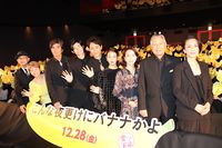 大泉洋主演で渡辺一史の書籍を映画化した『こんな夜更けにバナナかよ 愛しき実話』(12月28日公開)の完成披露試写会が11月12日に丸の内ピカデリーで開催され、大泉をはじめ、高畑充希、三浦春馬、渡辺真起子、竜雷太、綾戸智恵、佐藤浩市、原田美枝子、前田哲監督が登壇。マイクを手にしてメンバーがステージに続々と上がったが、大泉の手元にあったのはマイクではなく“バナナ”。大泉は「ものすごい小ボケをかまされました。上がる時に渡されたのは本物のバナナ」とボヤキ節全開で、舞台挨拶冒頭から会場の爆笑をさらった。