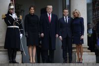 第一次世界大戦終結から100年を迎えた11月11日にフランスのパリ中心部の凱旋門で記念式典が開かれ、大戦に関係した60か国以上の首脳らが参加。メラニア夫人は、黒白のバーバリーのチェックのダブルのレインコートとクリスチャン・ルブタンの黒いニーハイブーツというシンプルながらもファッショナブルな出で立ちで、フランスに到着した。