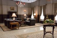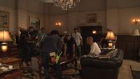 6月中旬、東映東京撮影所を訪れると、重厚な調度品に包まれた烏丸家の豪華な居間のセットが組まれていた。この日は烏丸家に赤目が訪ねてくるシーンの撮影が行われており、来客の赤目を花穎が出迎え、談笑する2人に執事の衣更月が給仕をしていく。今回の撮影にあたり、セレブという設定にふさわしいよう所作指導も受けたというだけあって、洗練された立ち居振る舞いを披露していく。どことなくスマートにケーキを食べる永瀬をはじめ、全員、見た目だけではなく、さり気ない動きまで麗しい!
