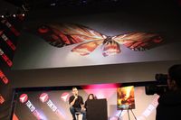 また「モスラは一番の挑戦でもあった。彼女は女神だからね。美しさと同時にパワフルさもあって、キングギドラとも渡り合えるような猛々しさが必要。モスラの目は、ゴジラの目をイメージした。ゴジラとなんらかのつながりを持ってほしかった」、「ラドンは火山のなかで冬眠しているところを発見される。火山で進化したので、皮膚が熱や炎に耐えうるようになっている」、「キングギドラの3つの頭は、それぞれ性格を変えた。3兄弟のようだね。モーションキャプチャーで3人の役者さんに演じてもらった」とそれぞれの怪獣への想いを吐露。