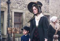 そんな衣装をまとったファニングの姿はとにかくかわいらしい!後に駆け落ちすることになるパーシー(ダグラス・ブース)とメアリーが出会うシーンでは、胸元にリボンのあしらいがワンポイントで施された、軽やかで清楚な生成り色のカジュアルなドレスに身を包み、どこか幼さを帯びた彼女のルックスとの相性もピッタリ。また、よそ行きの服装ではキュートな姿から一変。大きなツバの帽子を被り、ブラウスとチェックのスカートというかっちりとしたファッションで、女性の強さを体現したような、エレガントな美しさを帯びている。