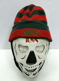 まず、レッドとダークグリーンのシンプルなボーダー柄のこちらのアイテム「クルーガーナイトメアニットセーター2018AW」は、『エルム街の悪夢』シリーズの殺人鬼フレディ・クルーガー仕様のニットセーター。ホラー映画好きなら、一目でわかる再現度の高い一品だ。同じ柄の「ナイトメアニットキャップ2018(悪夢レッド×グリーン)」もあり、あわせて楽しみたい。