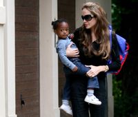 ヴィヴィアンは、黒いパンツとフード付きトレーナーで、ノックスは、グレーのVネックのインナーに緑系カーキのジャケットとニット帽という出で立ちで、あまりおしゃれとは言い難いファッションはいつものことだ。