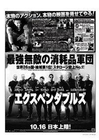 その公開に先駆け、全国の『エクスペンダブルズ』上映館では10月2日(土)より、本作を紹介した日刊スポーツ特別号が配布されることとなった。紙面には、ストーリーや各キャストの紹介だけでなく、本国アメリカでの興行成績や撮影時の秘蔵エピソードなども掲載されており、これを読むだけで本作の概要がばっちりわかる仕上がりとなっている。