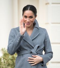 メーガン妃、新年の公務はエリザベス女王&キャサリン妃を意識した紫&赤で!