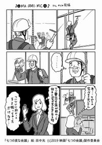これは、本作のTwitterキャンペーンで募集した、世の中に溢れる会議や打ち合わせの場で起こる“あるある”の中から厳選した7つのエピソードを「七つの変な会議」と題し、田中光によって漫画化したもの。映画の中で繰り広げられる、息が詰まるような会議とは打って変わり、「テレビ会議で手を振ってしまう」「会議中に鼻をほじったあとの指先が次にどこへ向かうのか気になる」「会議で配る資料を“指ぺろ”する部長」など、より身近で、疲れたサラリーマンの心に沁みわたるゆる~い世界観の出来となっている。