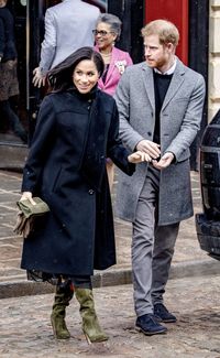 雪にも関わらず、前2日間の好評だったアップヘアから一変して、ストレートロングに戻したメーガン妃は、ウィリアム・ヴィンテージの黒いビスポークコートにお揃いのマフラー、黒いオーガンジー素材にフクロウ、花、シカ、鳥など、メーガン妃らしからぬ多数かつ大きな動物柄があしらわれたオスカー・デ・ラ・レンタのドレスに、サラ・フリントのオリーブカラーのスウェードのブーツと同色のラルフローレンのスウェードのクラッチバッグという出で立ちで、寒空で待ち受ける人々に、丁寧に対応する姿が捉えられている。