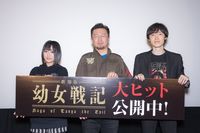 それぞれが『幼女戦記』のキャラクターやロゴの入った衣装を身につけてステージに上がり、初日をお祝い。爆音や銃撃が飛び交う、大迫力の戦闘シーンが大きな見どころとなっており、完成までには苦労が多かったという上村監督もスタッフの頑張りに感謝しきりで、上映後の会場からも大きな拍手が上がっていた。