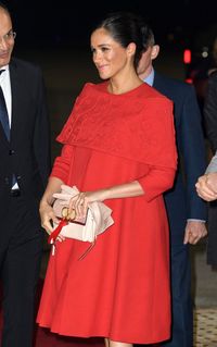 真っ黒から一転!メーガン妃、訪問国に敬意を表した真っ赤なドレスで公務復帰