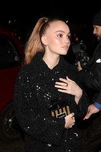 ヘアを後ろでラフにまとめ、サングラスをかけたリリーが、黒いジャケットで首にマフラーを巻き、ジーンズに白いスニーカー、シャネルではなくルイ・ヴィトンのバッグを持って、楽しそうに男友達と歩いている様子をパパラッチされているが、丸みのある額のかなり上から髪の毛が生えており、生え際が不自然に見える。