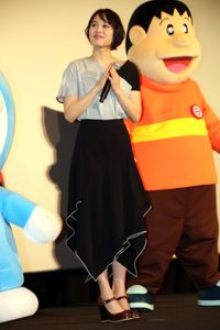 平井が手掛けた主題歌「THE GIFT」について広瀬は「私、メイクする間や移動中にずっと聴いてたんです」と語り「平井さんにお会いできたことがうれしくてドキドキしてました。心のなかでフィーバーでした」と大興奮だ。スネ夫が負けじと「僕と会ってどうですか?」と尋ねると、広瀬は「うれしいです」とコメント。スネ夫は「デレ~ン」と言って大喜びした。