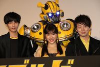 「トランスフォーマー」の最新作『バンブルビー』の公開記念舞台挨拶が、3月23日にTOHOシネマズ六本木ヒルズで開催され、日本語吹替版キャストの土屋太鳳と、志尊淳、声優の木村良平、悠木碧、濱野大輝、土屋神葉、リアルバンブルビー(着ぐるみ)が登壇した。土屋たちはバンブルビーとハイタッチをしながら登場し、会場を沸かせた。
