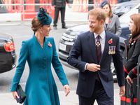 戦没者を悼み敬意を表するポピーの花を胸に飾ったワンピースは、久しぶりにおニューのもの。緑とブルーのシンプルなコーデには絶賛の声が寄せられているが、なによりもロイヤルファミリーファンを喜ばせたのは、キャサリン妃とヘンリー王子の2ショットだ。