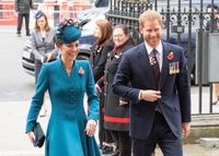 アンザック・デーは、第一次世界大戦のガリポリの戦いで勇敢に戦ったオーストラリア・ニュージーランド軍団(ANZAC)の兵たちと、当時国のために尽力した人々の追悼を行う特別な日。ウェストミンスター寺院で行われた礼拝にキャサリン妃は、首席司祭と同じ鮮やかなブルーグリーンのキャサリン・ウォーカーのAラインワンピースに、同色と緑のロジー・オリヴィアのファシネーター、スウェードのパンプスとクラッチバッグという装いで、ヘンリー王子と仲良くおしゃべりしている様子がパパラッチされている。