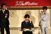 累計発行部数110万部を超えるミステリー小説を映画化した『うちの執事が言うことには』(5月17日公開)の公開記念パーティが5月7日にアニヴェルセル豊洲で開催され、映画初主演を務めたKing & Princeの永瀬廉、清原翔、神宮寺勇太(King & Prince)が出席。入り口で、キャスト陣が約100名のドレスアップしたファンをお出迎えするというサプライズを実施したが、突然の至近距離での触れ合いにファンは歓声もあげられないほど驚愕しきり。永瀬は「ドレスアップしてくださって。見惚れそう」と甘い言葉を投げつつも、「でも皆さん、反応が薄すぎません?『人気落ちたん?』って思われちゃう」と苦笑い。清原は「(お出迎えの後)2人がショックを受けていた」と明かし、会場の笑いを誘った。