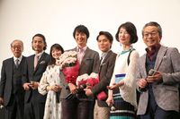 舞台挨拶では、12日に「母の日」を控えているということで、“作品の母”たる水谷が、本作のPRで駆け抜けたキャスト一同へ“ピンクのカーネーション”を逆プレゼント!花言葉は「感謝」「暖かい気持ち」とのことで、「お母さんですよ」と言いながら花を贈ると、中山は「お母さんに花を贈らなければいけない立場なのに、申し訳ないと思います」と感謝した。