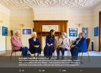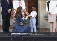紺地に白が映える上品なワンピース 画像はKensington Palace(@kensingtonroyal)公式Twitterのスクリーンショット