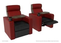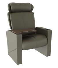 「プレミアムシート」は、ヨーロッパ産本革を使用した座と背パッドで、体全体を包み込むような座り心地。肘の一方にはトレーが置ける回転テーブルがついており、こちらのシートは鑑賞料金のみで利用可能。開業時は別シートでオープンするが、夏には下記写真のFERCO社製の両シートへの変更を予定している。