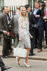 父親のトランプ大統領と共にイギリスを訪れていた、大統領補佐官でもある娘のイヴァンカ・トランプは、義理の母メラニア夫人がパーフェクトな着こなしだったのとは対照的に、ビジネスシーンでのダルメシアン柄のシアー素材のドレスが不評を買った。しかしそれ以上に、ファッショニスタで場慣れしているはずのイヴァンカが、カジュアルすぎて場違いな100万円超えのドレスをチョイスしたことに、驚きの声があがっている。