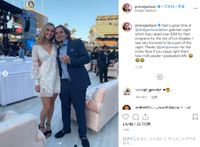前田健太夫妻も参加し、本拠地ドジャー・スタジアムで行われた「ロサンゼルス・ドジャース基金」主催のチャリティーガラでは、ブルーノ・マーズのパフォーマンスも行われるなどスターが勢揃い。プリンスは、ウェイビーなセミロングヘアに、紺のスーツとブルーのシャツ、地味めなパープルのネクタイという装いでフォトコールに応じたが、その横にはヒールを履くとプリンスより若干身長が高めの、白いレースのミニスカドレスを着たロングヘアの女性が。