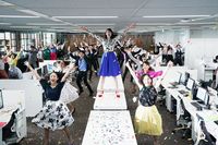 シーンのなかでも印象的なシュレッダーの紙切れをばらまく振り付けは、現場で監督が思いつき急遽取り入れたとのこと。紙吹雪が舞うことで三吉のダンスは一層輝きを増し、ハッピーバレーの軽やかな曲調にとともに、より印象的なものとなった。