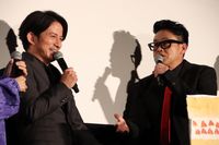山本は、本作で狂犬のように荒ぶる役を演じた柳楽の“フツーではない瞬間”を目撃したという。「柳楽さんはカットがかかった瞬間、めちゃくちゃ優しい。その切り替えがすごくて、ハッとした」そうで、「カーディガンを脱がせるシーンあるじゃないですか。脱がせた後、すごい優しいですよね。気を遣ってくださる」と続けると、岡田が「すごいエロいコメント。ここだけテレビで使われたらヤバイ!」とツッコみ、会場も大爆笑。「僕も(柳楽から)耳にナイフを突きつけられるシーンがあったけど、終わった後『大丈夫ですか、当たってないですか』ってすごい優しかった」と山本に同意していた。