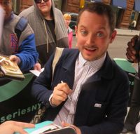 そんなイライジャが、シドニーで開催されたスーパーノヴァ・コミコンに出没。ジーンズに花柄の白いシャツの上からバーガンディのセーター、ブルーグレーのジャケットという出で立ちで、童顔は健在だがボディは少し太め、ショートヘアにひげを蓄えた顔はまん丸に。