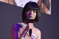 中谷は蜷川監督との作品作りについて、「私が水墨画だとしたら、蜷川さんは極彩色の曼荼羅。そこに水墨画がいかに溶け込めるのかを大事に演じた」と独特な言い回しで表現。また写真家という役柄については「私は観察することが大好きなので、エライザちゃんみたいなかわいい子たちをカメラを通して観察できて幸せでした」と語った。