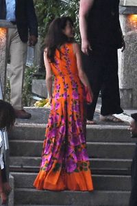 オバマ元米大統領夫妻らとコモ湖の別荘近くでディナーを楽しみ、政界進出の準備を進めていると言われているジョージ・クルーニーが、妻のアマルと共に、2014年に結婚式を挙げたヴェネチアでデート。アマルは人道弁護士としてのお堅いフォーマルな装いとは真逆の、胸元が覗く大人ドレスとお得意のミニスカドレスを連発している。