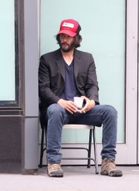 グレーのジーンズに茶色のスニーカー、グレーのシャツに野球帽を後ろ前にかぶったキアヌが、手にコーヒーを持って撮影現場を訪れる様子や、紺のジャケットを着た様子がパパラッチされているが、相変わらずあまりおしゃれではないものの、役作りのためか決定的な違いとしてヒゲがなくなっている。