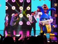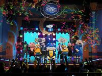 すると、盛り上がってきた会場の様子を見たスノーボールが「もっとハチャメチャに盛り上がってもらうぞ!」と宣言。突如流れ始めた音楽と共に、ステージには『SING/シング』のキャラクターたち、さらにミニオンたちも飛び出してきた。日村は踊るミニオンに誘われて一緒にダンス(?)を披露し、「ミニオンとコラボできるなんて最高!」と喜びを爆発。『SING/シング』×「ミニオン」×『ペット2』という豪華イルミネーション作品のコラボに、設楽も「いままでにない、USJだからこそできる夢のコラボですね!」と感動を表した。最後はスノーボールの提案で、客席の人々を含めた全員が“スーパーヒーローポーズ”をとっての撮影を行い、会場が熱い一体感に包まれ、本イベントは幕を閉じた。