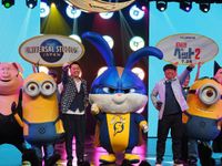 “ミニオン”を生みだした「怪盗グルー」シリーズなどで知られるイルミネーション・エンターテインメントの大ヒット作『ペット』(16)。待望の続編となる『ペット2』が7月26日(金)より公開されることを記念し、本日6日、大阪のユニバーサル・スタジオ・ジャパン(USJ)にて公開記念イベントが開催。本作のメインキャラクターであるウサギの“キャプテンスノーボール”の着ぐるみが世界初登場を果たし、日本語吹替版で主人公マックスの声を務めた設楽統、相棒デューク役の日村勇紀とバナナマンの2人も揃って登場した。
