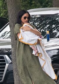 ロングヘアに大きなジバンシィのサングラス、リネン素材でカーキ色のリサ・マリー・フェルナンデスの545ポンド(約7万4000円)のワンピースを、ウエストのリボンなしでゆったりと着こなしているメーガン妃は、終始ナーバスな様子でピリピリムード。サングラスを外すこともなければ、笑顔もほぼ皆無だ。