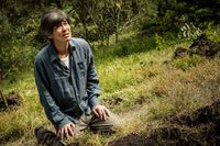 到着した場面写真からは、豪士、紡、善次郎の孤独や哀しみが垣間見える。孤独を抱える豪士の怯えたような姿や傷つきながらも生きようとする紡の真剣な眼差し。そして、集落で孤立を深め、やがて追い込まれ壊れていく善次郎が肩を落とし地面に崩れ落ちる様など、残酷な運命に苦しむ3人の悲哀が描かれている。