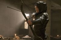 今回到着した場面写真には、2つの顔をあやつるロビン・フッドの様子が収められている。十字軍として戦い、仲間を助けるたくましい姿、領主として悪徳な州長官となにかを企んでいるような姿、盗賊として弓を射る姿や、貧しき者の代弁者“フッド”として民衆の心を掴んでいく姿など、ロビンが表と裏の顔を巧みに使い分けていることが伺える。