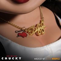 シリーズ第4作の『チャッキーの花嫁』(98)を思わせる、つぎはぎだらけのゾッとするようなルックスに加え、ガラスのような素材で再現された眼やオレンジの髪、全身11か所の可動と、細かいところまでハイクオリティ。極めつけに『チャッキーの花嫁』、『チャッキーの種』(04)から引用されたセリフのトークギミックまで搭載されており、劇中さながらの人形となっている。