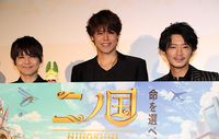 レベルファイブの日野晃博が製作総指揮・原案・脚本を務め、スタジオジブリ出身の百瀬義行が監督したアニメーション映画『二ノ国』(8月23日公開)の声優ドリームチームスペシャルイベントが8月6日にヒューマントラストシネマで開催され、宮野真守、梶裕貴、津田健次郎が登壇。梶が「なかなかここまでのおしゃべりモンスターはいない。宮野真守はファンタジーですよ」と宮野の素顔を語り、宮野が「おしゃべりモンスター!?宮野ファンタジー!?」と驚きの一言。さらに梶は「津田さんも“二ノ国”の人かも。いい声すぎて」と続けるなど、人気声優3人が息ぴったりのトークで会場の爆笑をさらった。