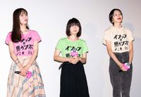 またキャスト陣も『カメ止め』に負けないほど将来性抜群な若手キャストに加え、川翔太や渡辺真起子、佐伯日菜子といった実力派が集結。亀田美羽役を演じた石川瑠華は「撮影の時には109館で上映するというのも、こんな光景が目の前にあるってことも全然想像できないことだったので、いますごく嬉しいです」と感無量の様子で語り、兎草早織役の井桁弘恵と戌井小柚役の紅甘も初日を迎えた喜びをかみしめた。