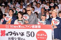 22年ぶりのシリーズ最新作『男はつらいよ お帰り 寅さん』(12月27日公開)が、10月28日(木)より開催される第32回東京国際映画祭のオープニング作品として上映されるなど、いまなお国民的映画として愛され続けている「男はつらいよ」。その第1作公開からちょうど50年を迎えた8月27日、新宿ピカデリーにて「祝!50周年 寅さんファン感謝祭」が開催され、山田洋次監督と倍賞千恵子、佐藤蛾次郎がトークショーに登壇した。